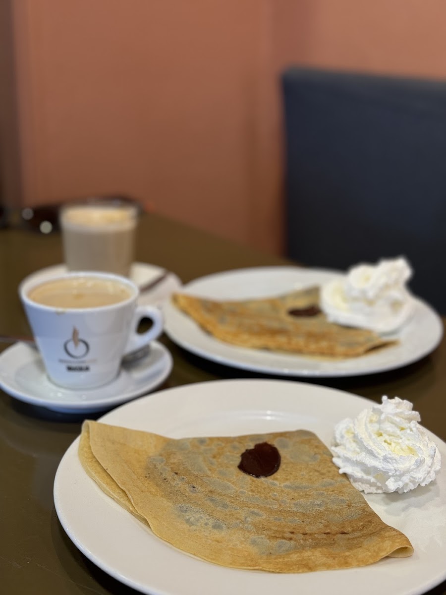 The menu leans into Mediterranean flavors made approachable—crepes filled with combinations like Serrano ham and cheese or goat cheese with honey and walnuts stand out as popular picks. These light dishes pair well with their range of drinks, from American-style coffees topped with cream to local specialties like vermouth served in classic Plaça style and seasonal horchata in the warmer months. Sandwiches with ingredients such as sobrassada and cheese or cured ham are also favored for a simple but satisfying snack.